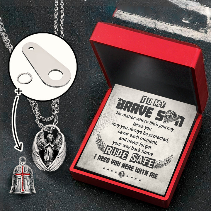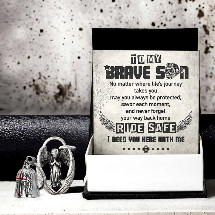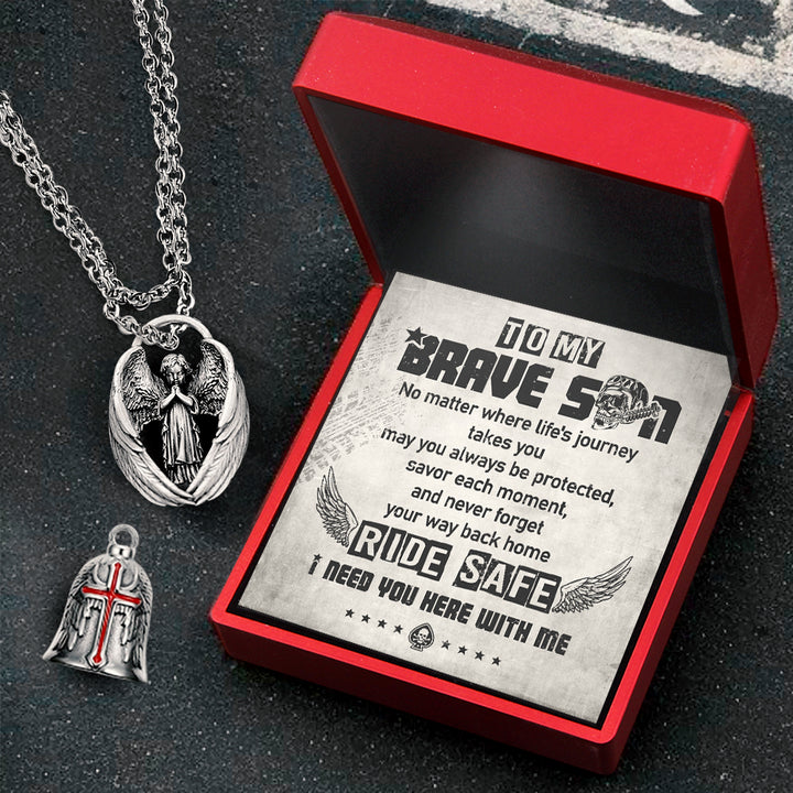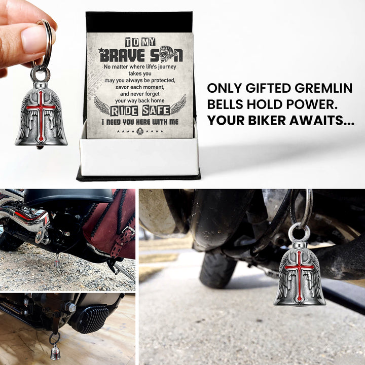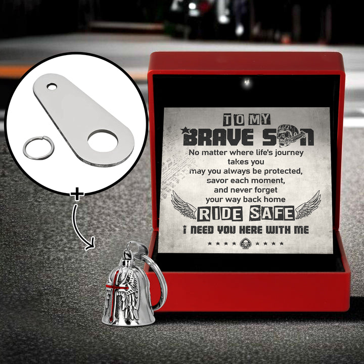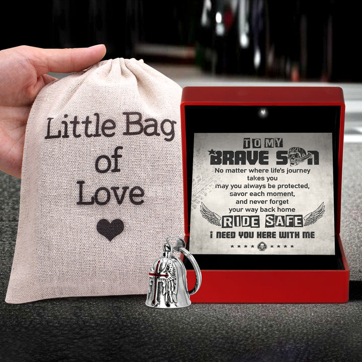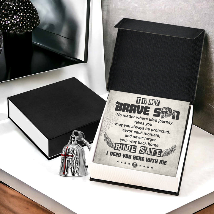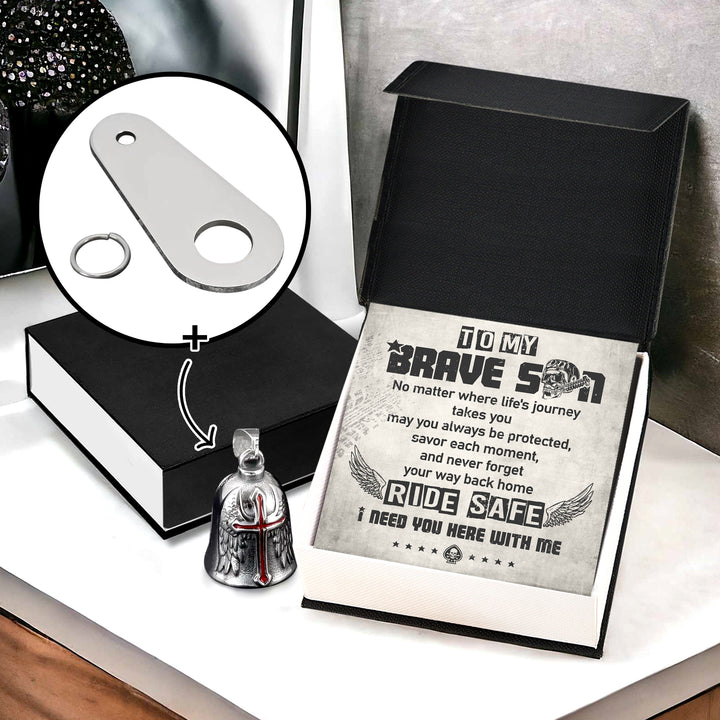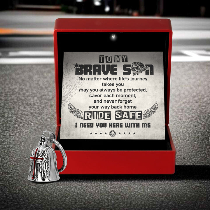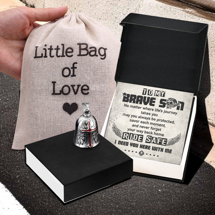Personalized Cross Wings Motorcycle Bell - Biker - To My Brave Son - May You Always Be Protected - Ragnml16007