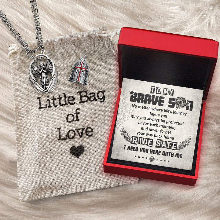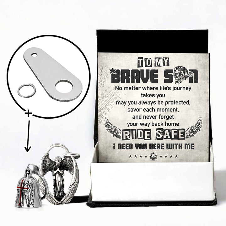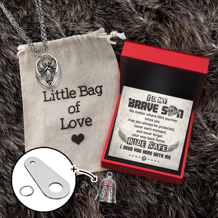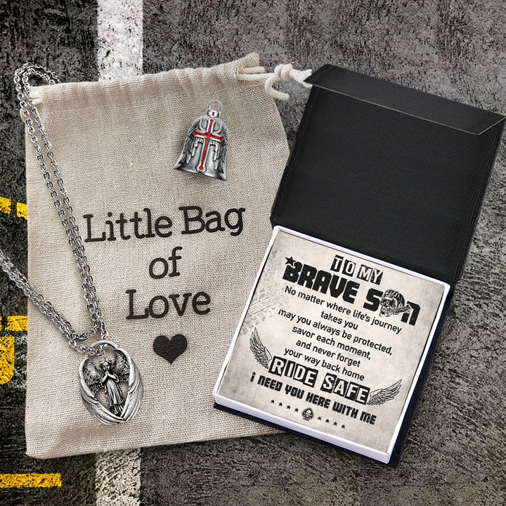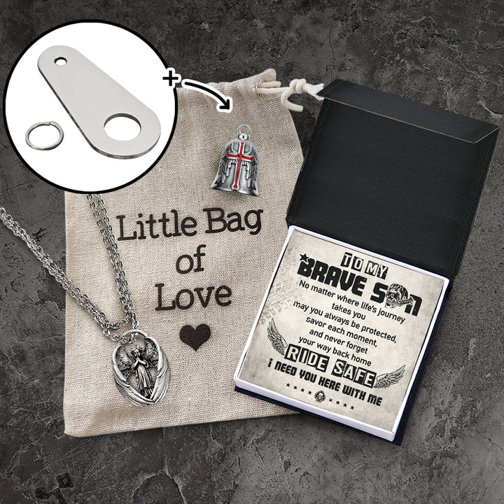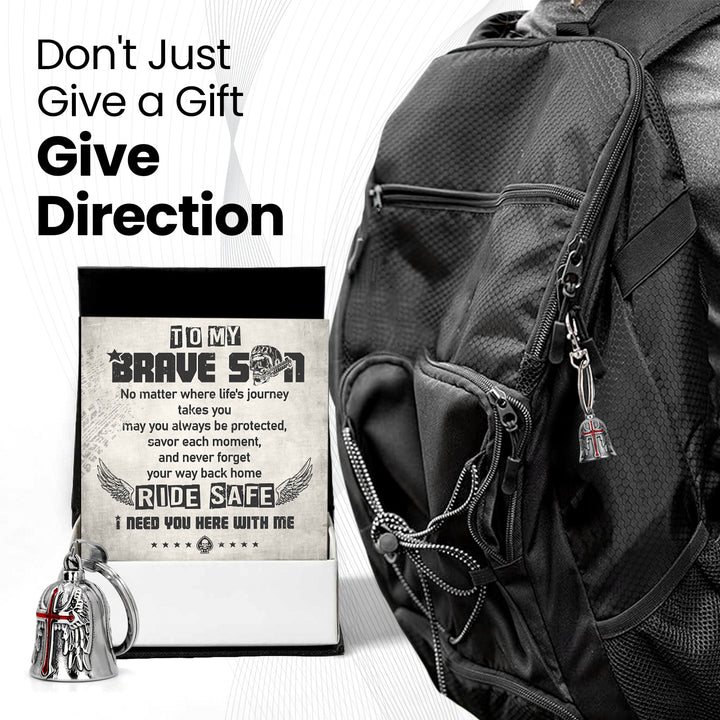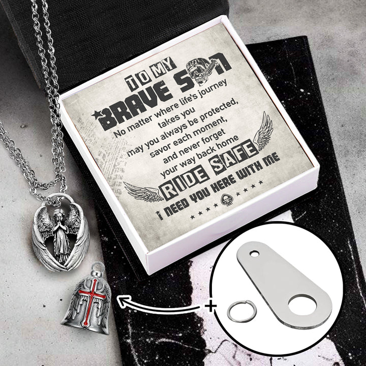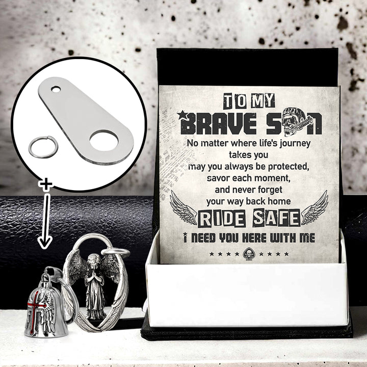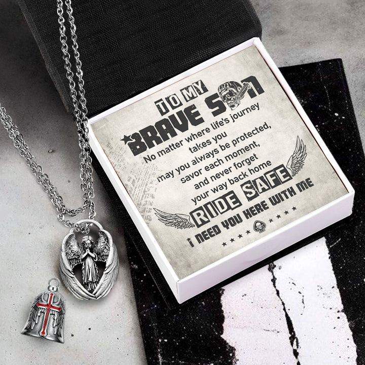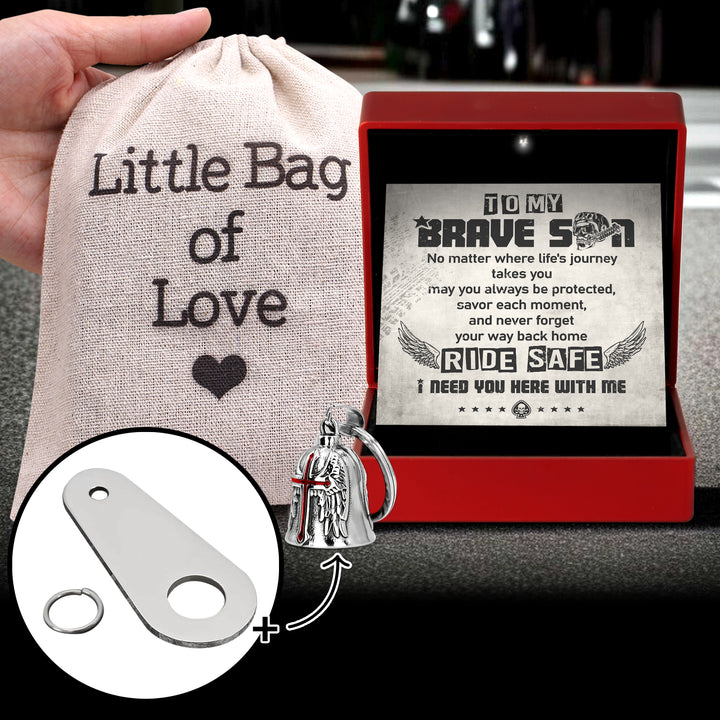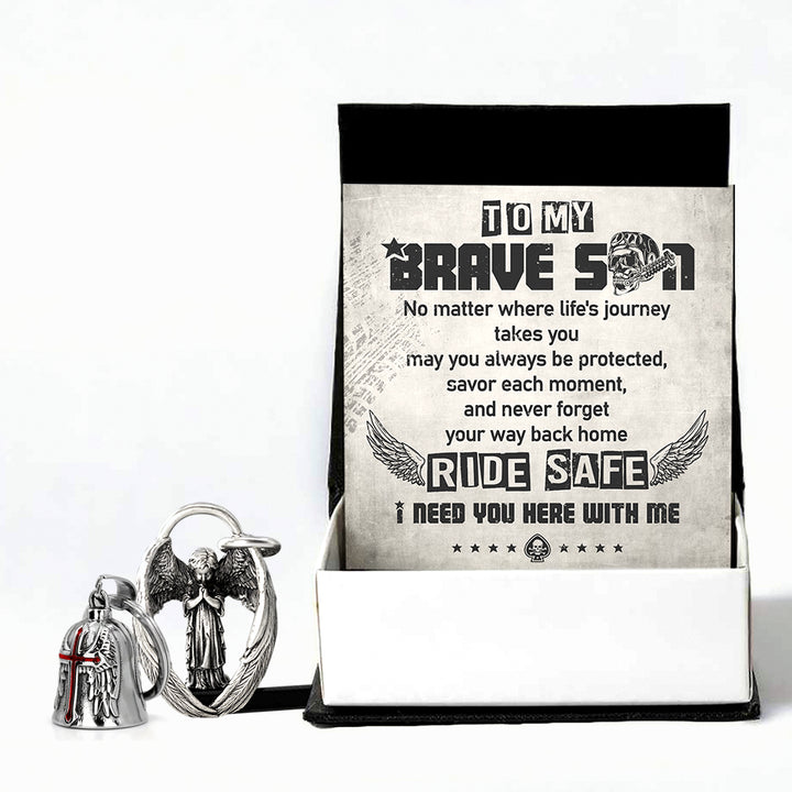 Personalized Cross Wings Motorcycle Bell - Biker - To My Brave Son - May You Always Be Protected - Ragnml16007